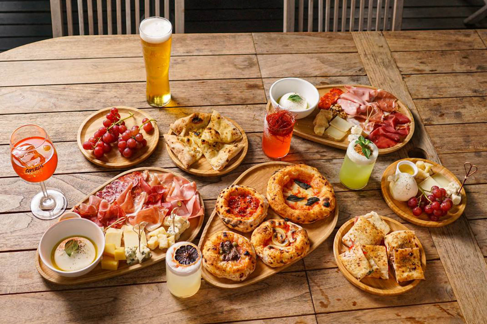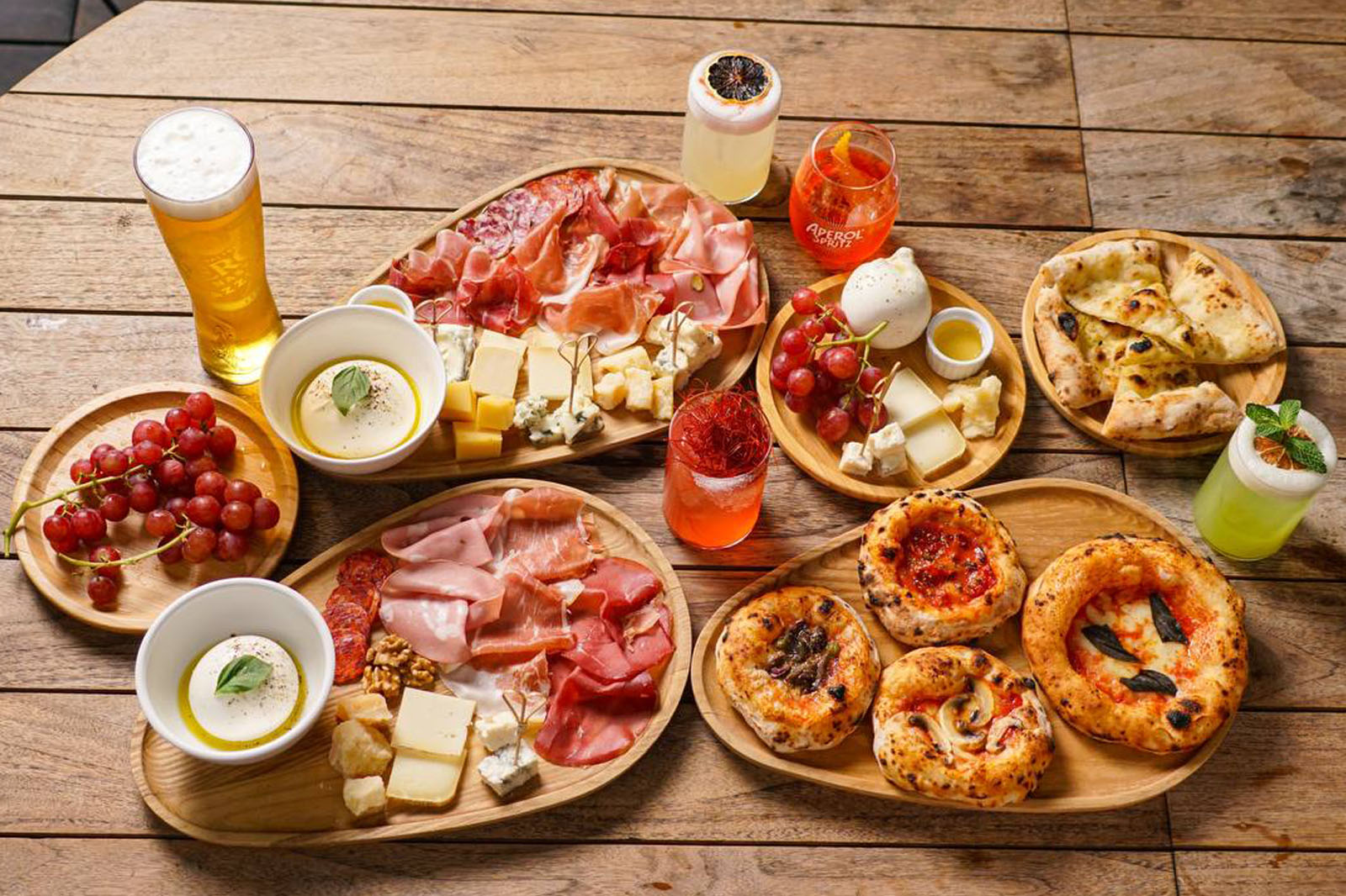 Mozzarella di Buffala Camapana DOP, Fior di Latte, Parma ham DOP 18 months aged, rucola, Grana Padano
