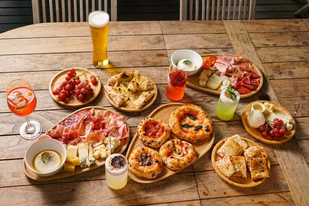 Enjoy pizzas & hearty Italian bites on our terrace
